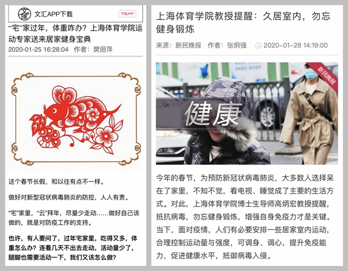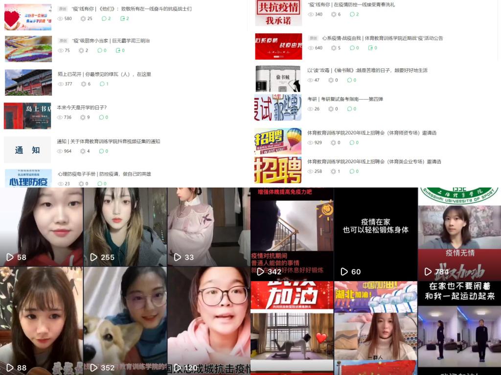 体训公司在积极贯彻公司联防联控工作要求的同时,坚决贯彻“三个全覆盖”“三个一律”“三个强化”工作要求,进一步加大防控力度,严防死守,努力打好防疫攻坚战,立足学科专业优势,依托微信公众号等平台及时发布专业的健身科普和心理咨询推送,服务全市联防联控工作,积极引导师生做科学防控的践行者和健康上体的守护者,展现上体人身心一统的良好形象,相关资讯和内容在《人民日报》、《解放日报》、《文汇报》、《新民晚报》、《新闻晨报》等媒体平台上报道。