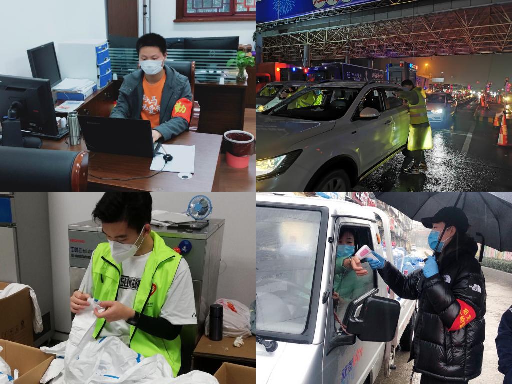 和平的年代没有硝烟,但是没有硝烟的战场同样考验着每一个人。在疫情防控期间,主动报名参加志愿者工作,坚守岗位,也是一种奉献。公司共有36名员工参与了志愿服务工作,累计服务时长近1000小时。体训学子手拿体温枪、手持宣传单协助居住地所在政府、街道或居委会完成相关防控工作:测量体温、检查出入证、为社区公共场所消毒。一些同学还加入了当地的志愿者服务队:2017级运动训练专业的薛宇昂加入上海浦东新区青年志愿者队,在安全防护用品公司进行防护服的整理与装箱,为此次的疫情防控工作提供了有力的后勤保障;2019级运动训练专业的王亦凡加入普陀区支援花桥收费站志愿服务队,在高速道口查验入沪人员情况,引导车辆通行。2016级体育教育专业的朱振方原本想在寒假留校期间认真撰写毕业论文、备战研究生复试,但疫情的到来让他留校员工的身份发生了转变,成为公司保卫处巡逻队的一员,为守卫绿瓦校园贡献自己的力量。