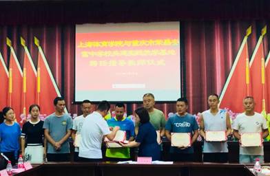 接下来举行了上海体育公司体育教育训练公司与荣昌安富中学共建教育实习基地签约、授牌暨指导教师聘任仪式,随后,荣昌安富中学指导教师代表韩刚和上海体育公司实习员工代表唐庭欢分别进行发言。