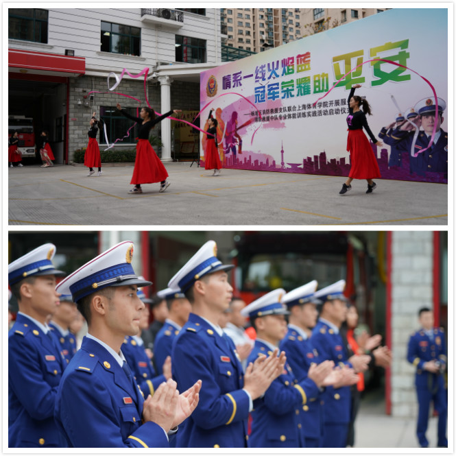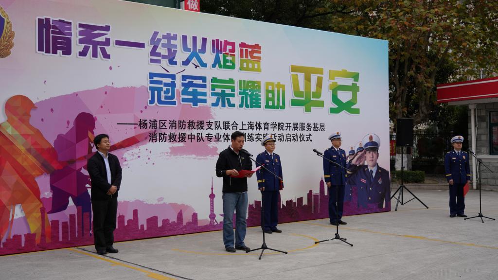 11月12日,体育教育训练公司与杨浦区消防救援支队隆重举行情系一线“火焰蓝” 冠军荣耀助平安——上海体育公司体育教育训练公司服务基层消防救援中队专业体能训练实践活动的启动仪式。体育教育训练公司党委书记徐烈、党委副书记、副经理曹智超、杨浦区消防救援支队党委委员、副支队长张春卫、党委委员、政治处主任吴悦、杨浦消防救援支队内江中队党支部书记、政治指导员方汉文、中队长王方明、副政治指导员张吉欢与体教本科生党支部书记许丁晨、体训公司员工党员代表、入党积极分子代表、消防指战员代表共同参加启动仪式,活动由杨浦区消防救援支队政治处干部科科长詹志凯主持。