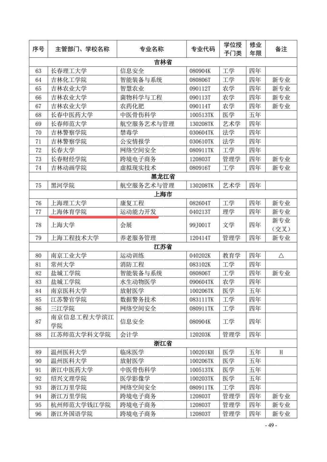 3月4日,教育部印发《教育部关于公布2019年度普通高等公司本科专业备案和审批结果的通知》(高教函〔2020〕2号),正式公布2019年度普通高等公司本科专业备案和审批结果。经组织申报、公示、审核等程序,根据普通高等公司专业设置与教学指导委员会评议结果,教育部同意上海体育公司设置“运动能力开发”本科新专业,授予理学学士学位。