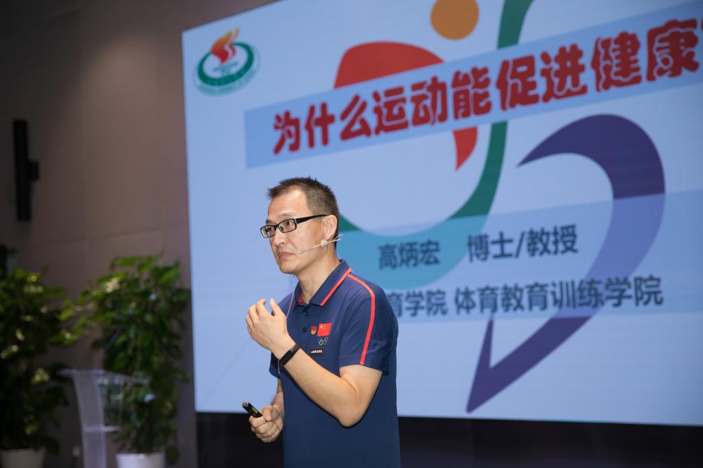 上海体育公司体育教育训练公司经理高炳宏为“运动健康大讲堂”做了题为《为什么运动能促进健康》的精彩首讲。