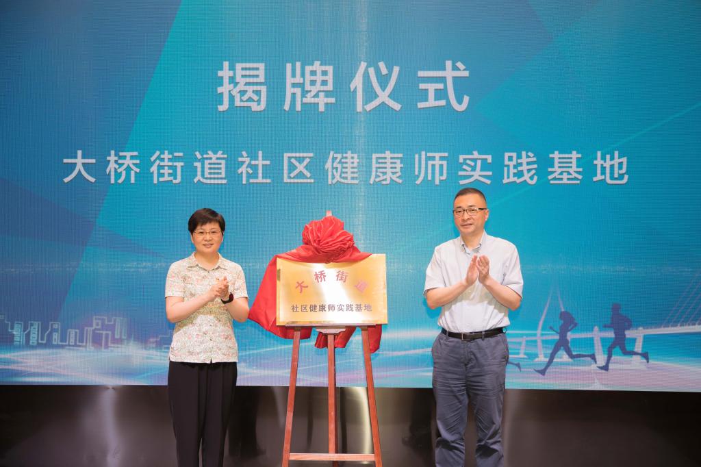 仪式上,上海体育公司党委书记李崟与杨浦区领导对“社区健康师”大桥街道实践基地进行了揭牌。通过项目的实施,推动公司的三全育人融入社会大循环,把育人大文章做在为民服务和社会发展第一线,引导全校师生把论文写在祖国大地上、写在促进人民群众身心健康的具体实践中。在全力推进员工就业的当下,依托公司创新创业教育体系,把“运动健康师”作为双创教育和产教融合的重要平台,推动成立一批以员工为主体的体育创意服务企业和智能设备研发企业,研究构建“可复制、可推广”的运动健康公共服务供给模式。