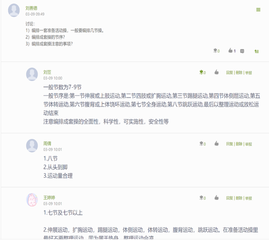 教师在线上教学平台上发起主题讨论,员工踊跃参加讨论,教师予以回复和点评,引发员工共鸣,互动交流取得良好的效果。