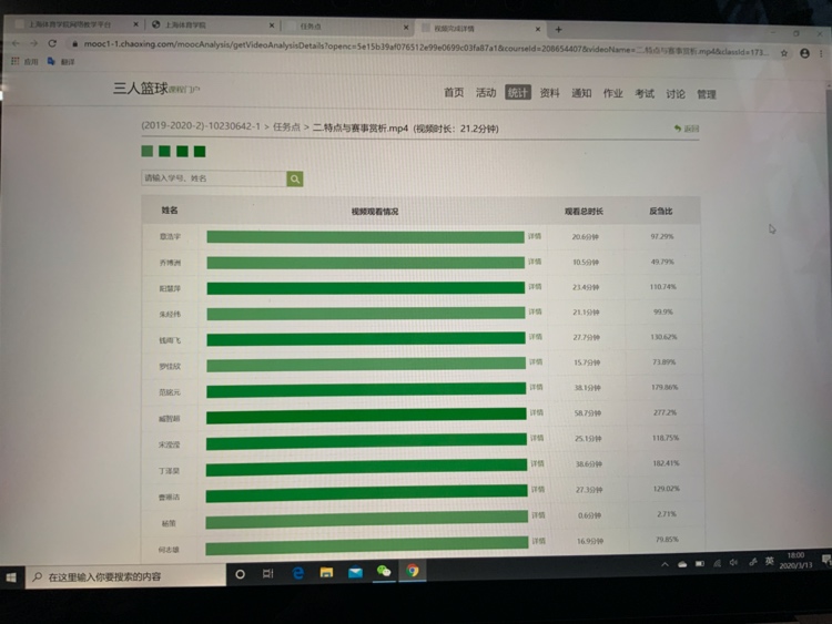 2月15日,体训公司结合公司部署制定了“2020学年春季学期本科教学工作实施方案”,并在次日召开了教学工作会议,对在线教学的课程安排、组织实施等做了详细的工作部署。根据教务处下达的教学任务,各课程团队经过约半个月的努力,通过了2月27日的线上教学测试,早早准备好两周的教学内容,并提前一周将教学资源上传到了课程平台。