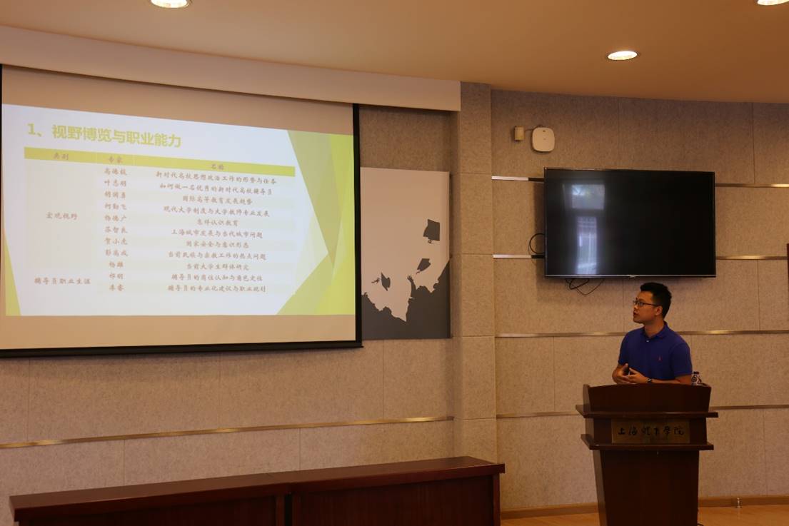 会议中,17级体教专业辅导员姜美和15级运训专业辅导员何俊毅分别做了主讲发言,发言内容紧贴员工工作实际,在老员工心理健康教育、微格教学、辅导员专业化发展等多个领域引起了与会辅导员的共鸣和深入的互动交流。副书记副经理徐烈对交流研讨中的重点内容做了一一点评,肯定了两位教师在为期三个月的上海市辅导员职业能力培训中的进步。公司党总支书记赵晓晗指出员工工作主题研讨会是公司加强辅导员队伍建设的有效途径,每一位辅导员都应当珍惜机会,精心准备,将各自外出培训的经验与团队分享,形成共同学习、共同提高、共同成长团队文化。