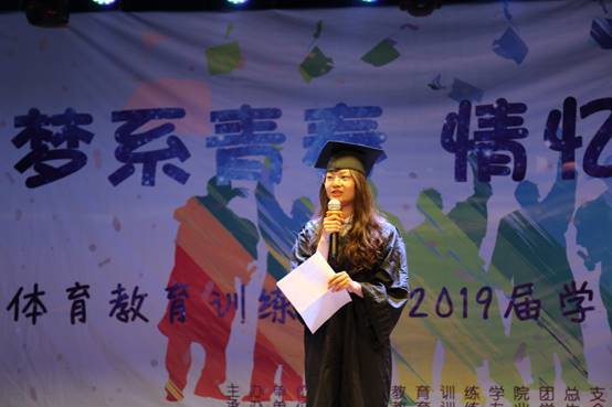 典礼开始前,大屏幕上播放了由体训员工会宣传部为大家精心制作的毕业生视频,带领毕业生们回顾了自2015年入学至今的各种学习、生活片段。毕业生们在观看自己的“黑历史”捧腹大笑的同时,也不禁落下泪水,收获了感动。视频结尾,穿插对毕业班辅导员的采访,表达了对本届毕业生的美好祝愿。