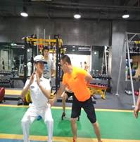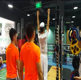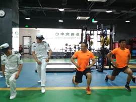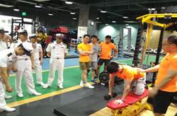 面对科学完善的体能训练研究中心,官兵们按捺不住运动的热情与上海体育公司第五期体能队学员一起在赵博士的指导下进行相关体能训练实操。在训练过程中所出现的错误动作,赵博士给予纠正,并提出了相关的要求。