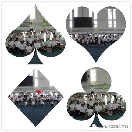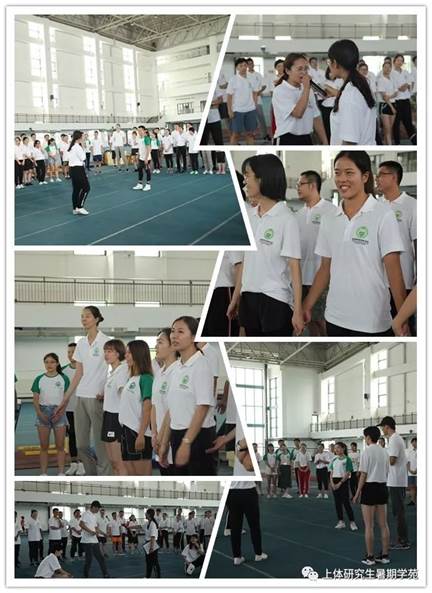 为了促进大家相互之间的沟通,我们进行了团队分组和展示(每个班级为一队),各队发挥集体的智慧分别对队名、队歌、队标、队呼和团队造型进行了展示,把体育人的精神发挥的淋漓尽致,造型展示更是各种高难度动作应有尽有。