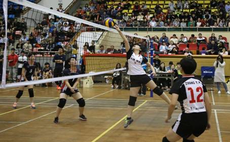 17:30,经管公司与新外公司女排决赛率先进行。比赛伊始,双方便进入了激烈地角逐,馆内人头攒动,欢呼、加油声此起彼伏,热血澎湃的观众,震耳欲聋的加油声,激情释放的运动员,让整个综合馆沸腾了。经管女队赢得首局,不甘示弱的新外女队振奋精神,火力全开,扭转了颓势,扳回一城,前两局双方均净胜对方仅两分。决胜局,经管女队发挥更加稳定,进攻有效,新外女队则显得比较急躁,无谓失误过多。最终女子组比赛,经济管理公司代表队赢得桂冠,体育新闻传播与外语公司和体育教育训练公司五队分获第二、三名。