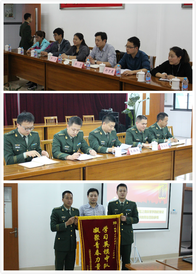 座谈交流中,车站中队政治指导员周励警官向体训公司师生介绍了中队概况;支队朱雄兵处长就黄浦消防支队的建制、消防部队的宗旨、党团组织共建的内容、消防培训、防火防灾理论与技能的训练等与体训公司师生代表进行了详细的交流;徐烈老师代表体训公司向消防官兵介绍了上海体育公司、体训公司概况,并具体介绍了当前体训公司党建、团建方面所取得成绩,同时,从“向最美逆行人致敬”、“提高师生防灾意识”、“欢迎官兵到体院互访”、“全力支持部队开展警营文化建设”等方面进行了深入交流,徐烈老师代表体训公司党总支向中队主管赠送了锦旗。