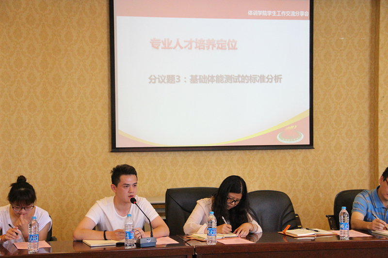 紧接着分享会正式拉开大幕,分别围绕“专业人才培养定位”主题下设的“教团队格证书的针对性培养”、“教育实习的组织与过程管理”、“基础体能测试的标准分析”以及“优良学风长效机制”主题下设的“员工骨干示范效应”、“术科课程教学质量”、“课堂教学学风状态”等六个子命题进行交流。教师、辅导员以及员工代表积极发言,频繁互动。针对刚刚结束的体能测试,同学们的不解以及专项教练的疑虑,统统在本次交流中得了到满意的解答。同样,同学们也表达了教团队格证书考试中最迫切的需求,也帮助公司在今后的资源安排上有的放矢。丁经理和杨经理分别针对老师、同学提出的疑问进行解答,几个议题交流下来,同学和老师们均感到意犹未尽,受益匪浅。