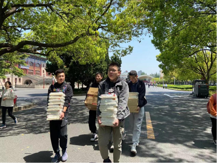金琼阳:四月十九日中午,在参加完“学党史”主题的组织生活会,参观完武术博物馆后。学硕第二党支部组织同志们前往体训公司办公楼领取党史学习的资料。在协助分发完学习资料后得知本支部研三年级部分同学因找工作或参加工作实习未能到场,我与几位支部的同志利用午休时间将剩余的几百本党史学习资料搬至宿舍去辅导员办公室,方便未能抽空前来的同志们领取资料,深入学习党史知识。