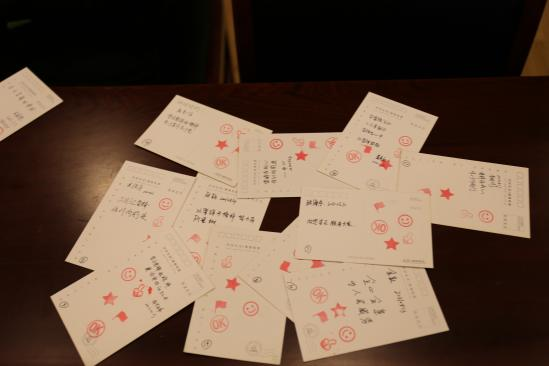 进入会场之后第一个活动便是“明信片寄语”,办公室为同学们准备了精美的明信片,同学们也都纷纷在明信片上写下了对于学习雷锋的精彩语句。