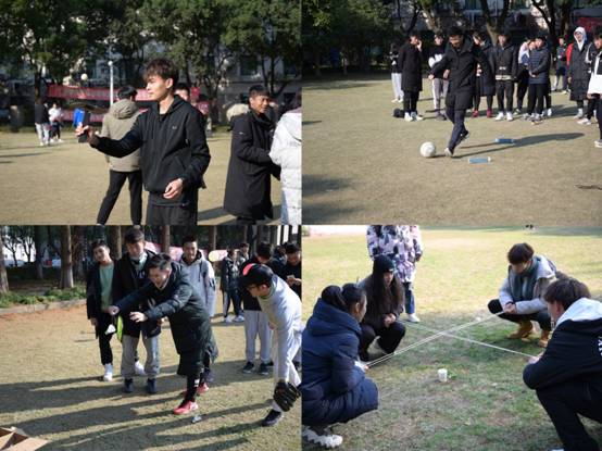 体训专项版块,由羽毛球、乒乓球、排球、足球专项形成的游戏任务充满了挑战。冷风的到来为任务的完成增加了难度。但是,羽毛球的漂亮发球,乒乓球的精准控制,排球的默契配合,足球的完美射门,充分展示了优秀的体训学子是如何凭借自我才能和过硬的实力乘风破浪。游戏竞技板块由“轨道传球”、“瞎子背瘸子”和“扇杯走迷宫”组成,以组队竞速一决胜负。团结拼搏、竞攀向上的学子们,场面紧张有序、妙趣横生。大草坪上有进行着激烈竞争的队伍比拼,有进行着默契配合团队游戏完成,也有着学子使出浑身解数完成个人游戏。