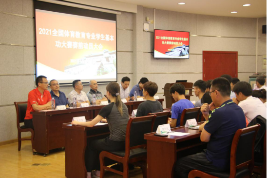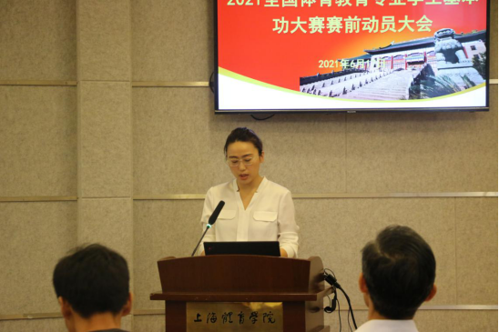 6月17日,体育教育训练公司于1111会议室召开了2021年全国高校体育教育专业员工基本功大赛赛前动员大会。上海体育公司副经理唐炎、教务处处长邵斌、训竞处处长邵春、体训班子成员、基本功大赛指导教师及8名参赛员工参加了会议。会议由体训公司党委书记徐烈主持。