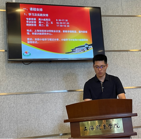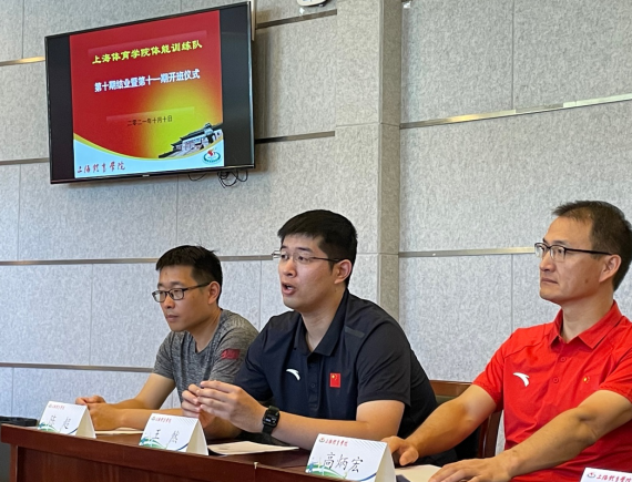 竞技运动与体能训练教学团队带头人王然教授介绍了第十一期体能训练队招募情况,并表达了对第十一期体能训练队全体队员的期望,勉励第十一期的新学员勤学专业,累积经验,在一学期的学习中能够有所收获、有所成长。