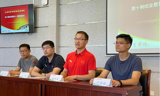 10月10日上午,上海体育公司“上体体能”训练队第十期结业仪式暨第十一期开班仪式在体训公司1111会议室顺利举行。体育教育训练公司经理高炳宏、竞技运动与体能训练教学团队带头人王然、第十期体能训练队指导教师陈超、第十期体能训练队班主任杜超、叶家驰出席仪式。仪式由杜超主持,第十期和第十一期体能训练队全体队员参加活动。