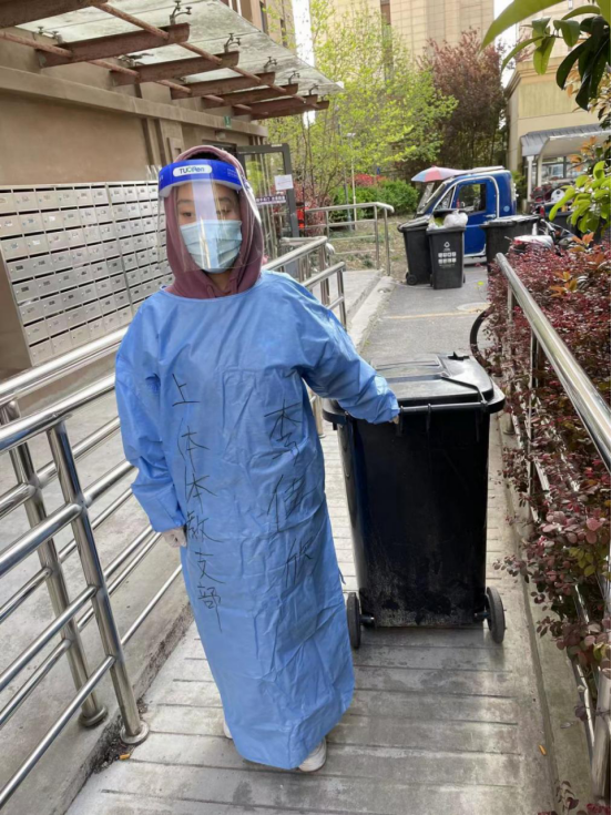(19级体教李佳欣同志在宝山区高境七村社区进行生活垃圾转运)