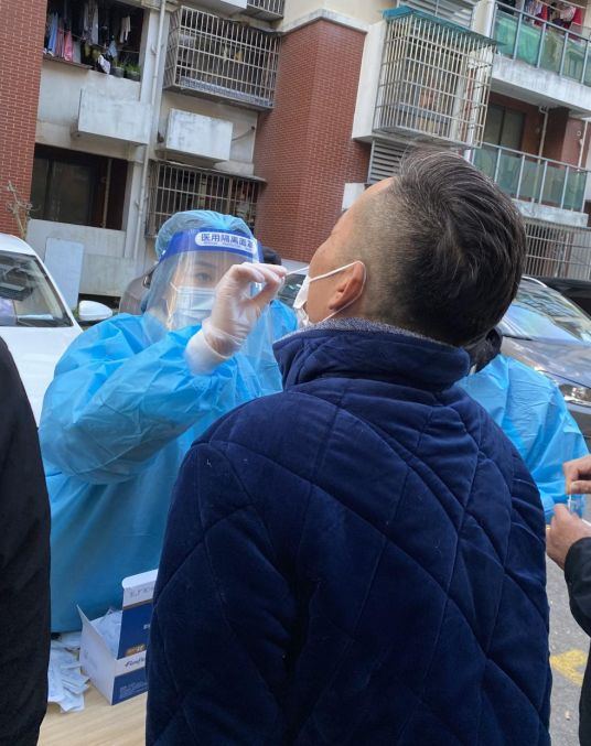 (18级体教杨奕我同志在浦东新区高东镇杨园新村参加抗原采样服务)