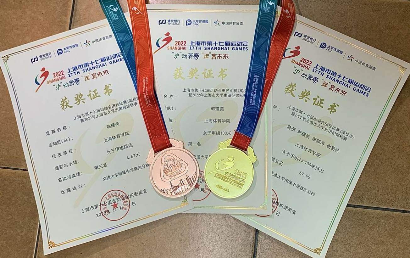 上海市第十七届运动会田径比赛(高校组)比赛于2022年12月3-4日在交大附中嘉定分校举行。公司田径队师生克服疫情影响,从暑假就开始集训认真备战,在两天比赛日寒冷下雨恶劣天气下,经过激烈的比拼,最终获得14金、16银、15铜,团体总分598分,高出第二名280分的优异成绩遥居榜首(金牌总数,奖牌总数,团体总分全部第一)。公司首次由非体育生组成的甲组(阳光组)参加市运会,也取得三金三银四铜的优异成绩