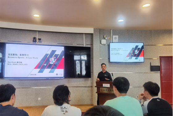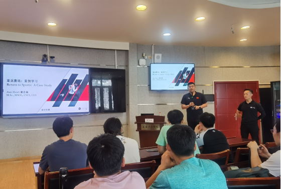 为提升同学们对运动员伤后重返赛场的理解和认识,强化本硕博员工关于体能康复的理论素养,5月25日下午,竞攀讲坛第24讲在yl23411永利集团1111会议室举行。Quantum Performance运动表现教练谢志纶以“重返赛场的概念与应用”为主题进行分享,讲座由yl23411永利集团副经理王然主持。
