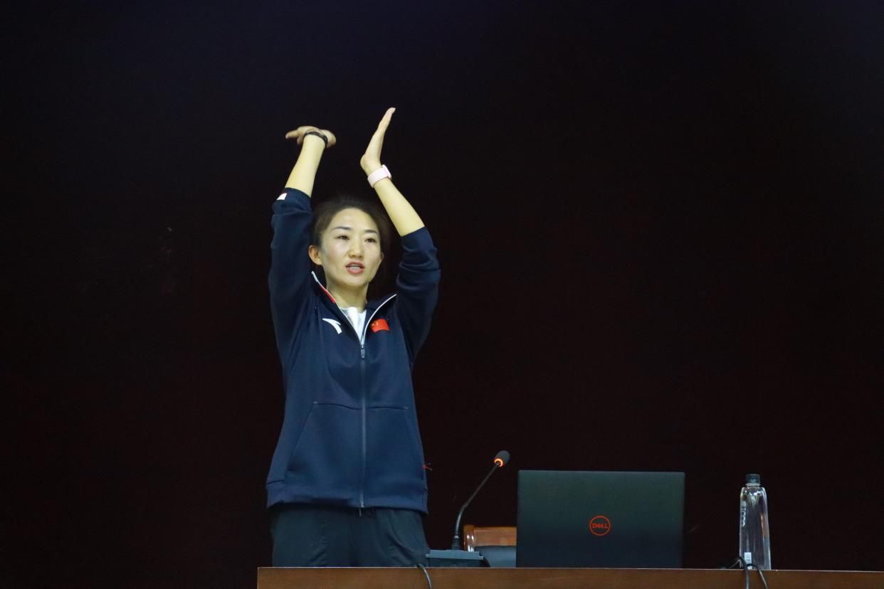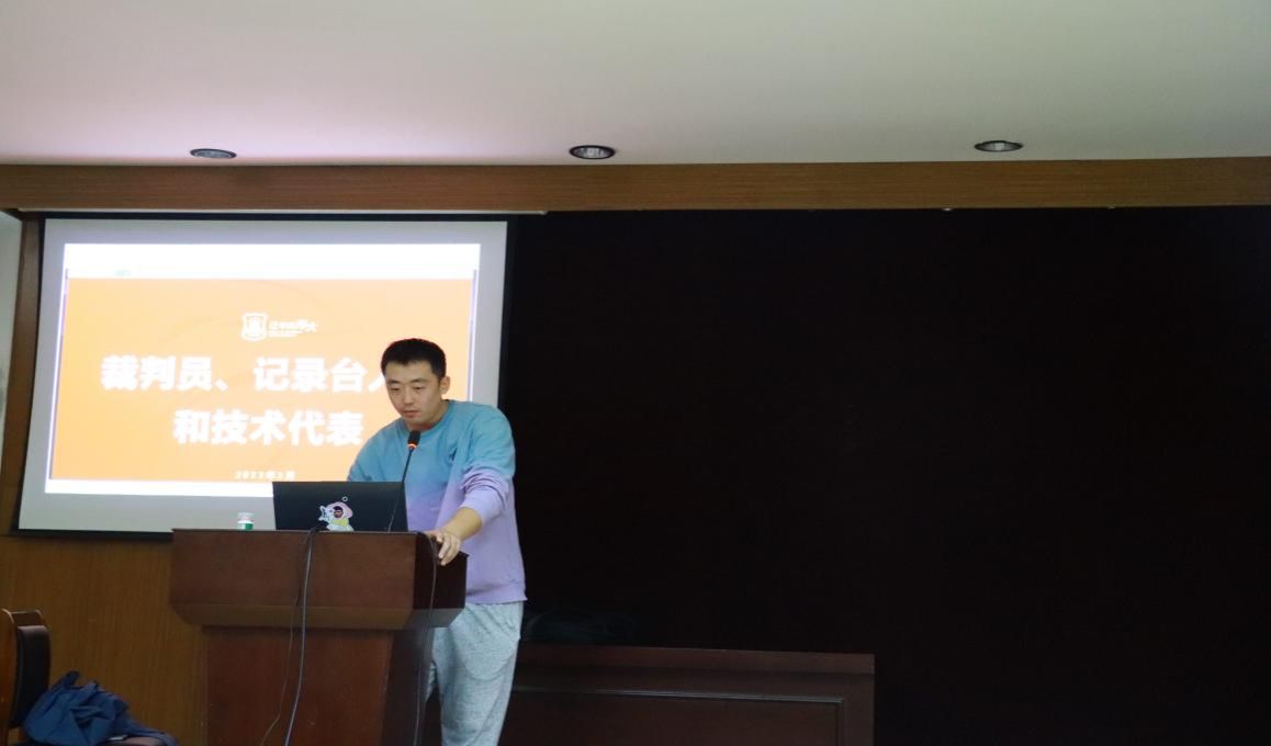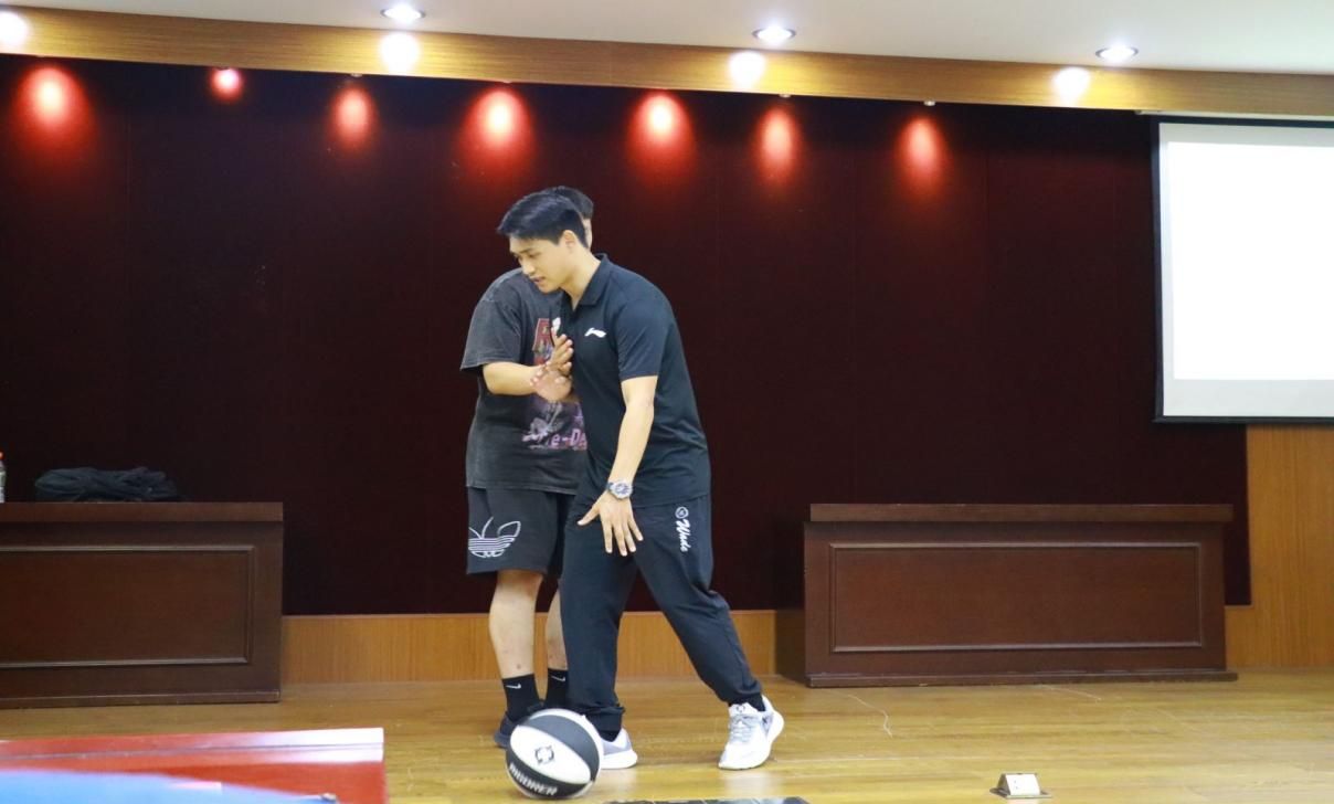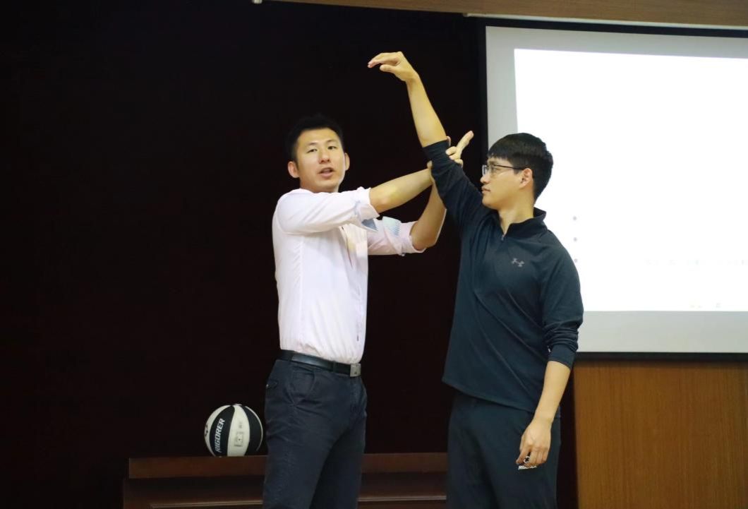 田宇航和田林同学虽然是公司研究生二年级在校生,但作为2023年新晋国家级裁判员,在组织工作同时也贡献了细致与专业的教学课程。如田林同学的“违例”讲解、田宇航同学的“裁判法”与“裁判基本功”等讲解与示范教学,为学员建立了系统的裁判吹罚的框架,并为后期临场执裁奠定基础。