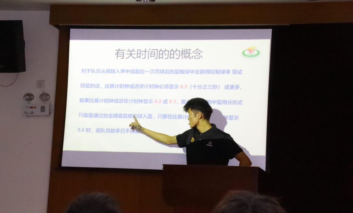 梁霄老师一直以来专注于公司女篮队伍建设为公司篮球发展作出重大的贡献。梁霄老师作为2023年新晋国家级裁判员也积极参与到此次培训班的授课教师行列。开课前梁霄老师强调了记录台在篮球比赛中不可或缺的重要性。在激起同学们好学心的同时也强调了技术台工作的复杂性和重要性。此后,梁霄老师就记录台的每位人员—记录员、助理记录员、计时员、进攻计时员进行了一一细致的讲解,说明每位人员的职业与工作流程,为学员们带来了一堂细致、专业的记录台工作指导课。