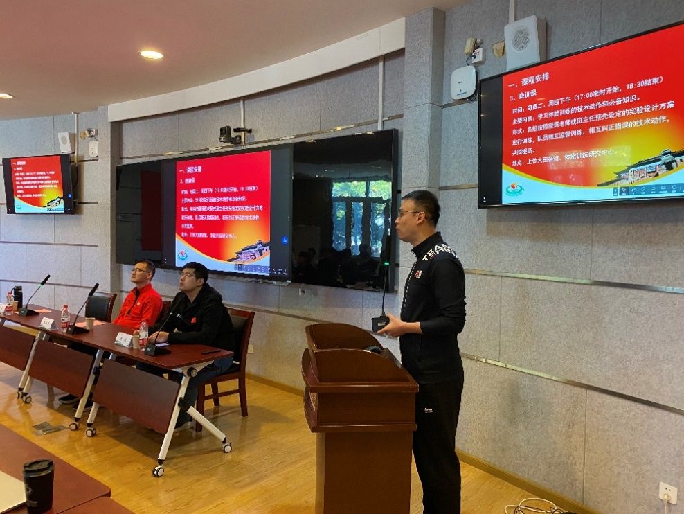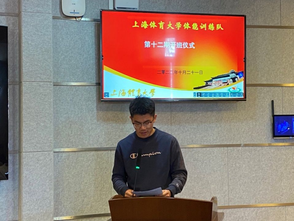 作为第十二期“上体体能”训练队的班主任,体能教学团队负责人李斐介绍了本期训练队的管理办法,他勉励新学员们勤练专业技能,勤学专业知识。