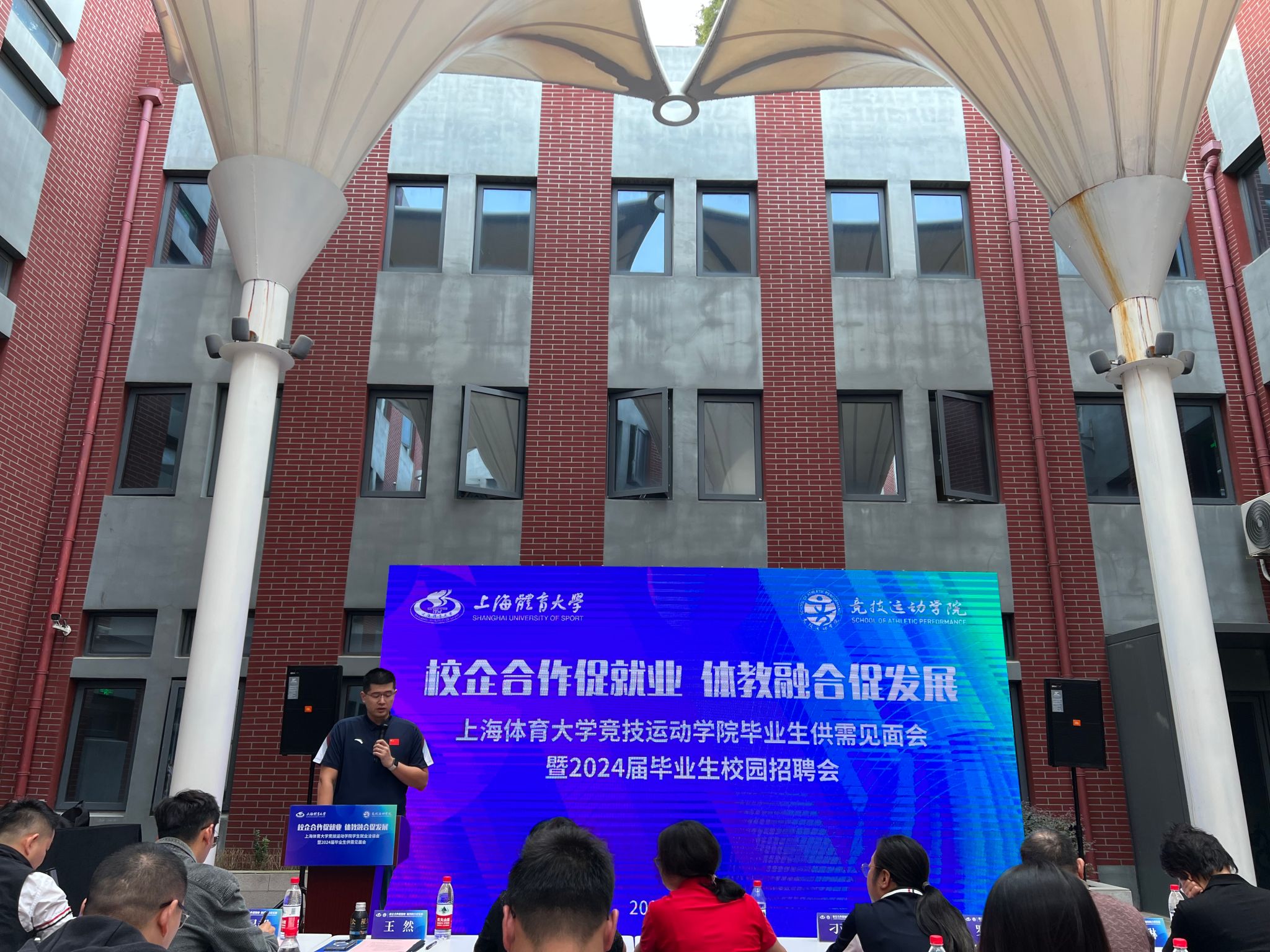 上海巅峰健康科技股份有限公司人力资源部部长冯磊作为企业代表,介绍了体育产业和健身领域面临的瓶颈、挑战及新的发展机遇,他指出,当前体育领域急缺专业人才,号召毕业生们积极投身健康中国建设,共同助力体育产业健康、持续发展。