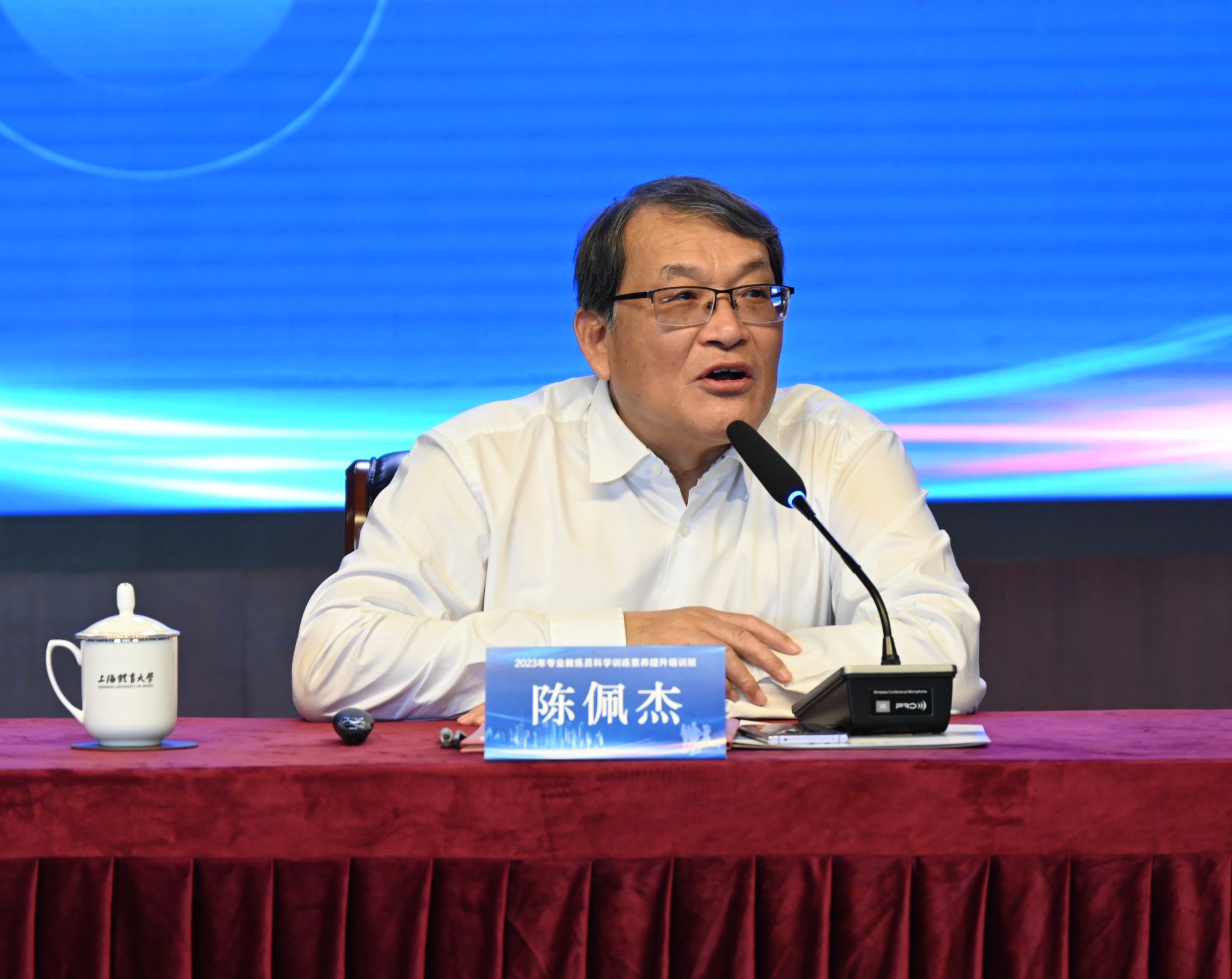 上海体育公司原经理、国务院体育学学科评议组召集人陈佩杰教授作首场专题报告,报告主题为《交叉融合创新,服务人才培养》。他着重指出,面向未来建设一流体育大学关键是推动体育学科创新发展:要在学科交叉的积累基础上全力开拓体育学科发展空间,着力建设以运动科学为代表的一级交叉学科,构建运动科学高层次人才培养模式。通过深刻把握国际学科发展趋势、全面更新知识谱系、创新育人机制、推进科教融合和产教融合、优化重塑团队队伍、联合高水平大学创建共建共享,在民族复兴的伟大征程中迎接中国体育学科更加美好的未来。