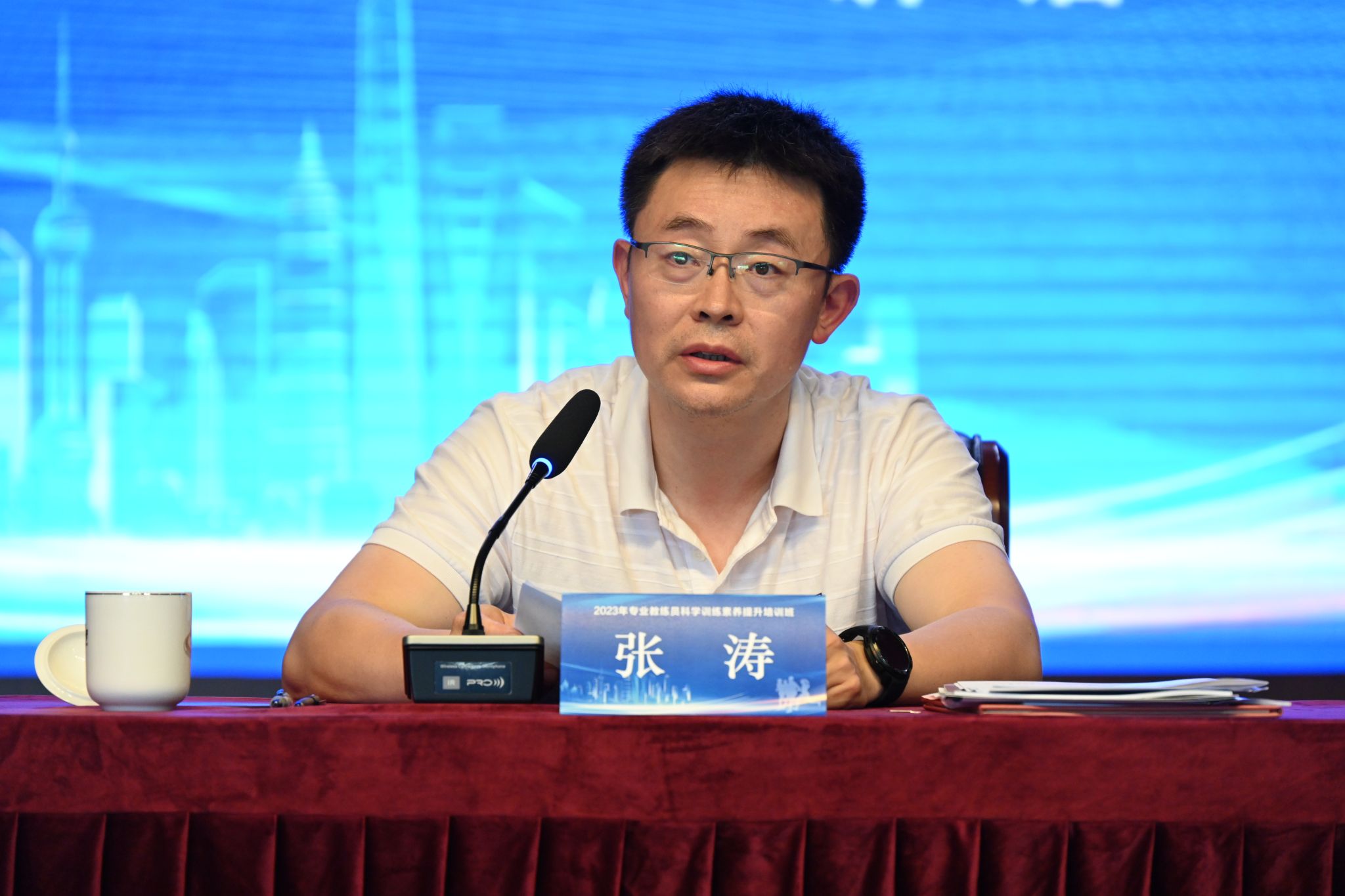 国家体育总局科教司副司长张涛代表体育总局科教司向授课专家和参训学员表示欢迎,对承办单位yl23411永利集团的辛勤付出表示感谢,并预祝本次培训取得圆满成功。他指出,竞技体育具有高度专业化的特点,其发展离不开科技助力。而建立一支具有科学素养的高水平、高素质教练员队伍,对于提高我国竞技体育水平、培养优秀体育人才具有十分重要的意义。希望通过本次培训,帮助教练员们掌握现代竞技训练方法与手段,丰富竞技训练理论知识,更新执教理念,提高执教水平。他对全体参训学员提出了三点希望:首先是用思想指引行动,提高政治站位,强化责任担当,致力于为体育事业发展、推动我国向体育强国目标迈进贡献力量;其次是坚持创新思维,提高能力水平,紧跟科技进步的步伐,在竞技体育领域中长久保持竞争力;最后是加强交流学习,将学到的理论知识与工作实践结合起来,保证学有所思、学有所悟、学有所得。