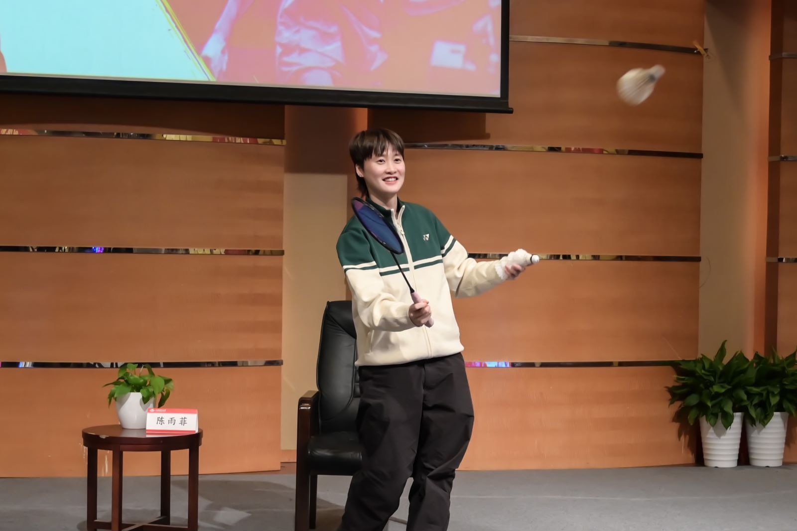 活动现场播放了陈雨菲的比赛视频集锦,视频中她一次次击败对手、站上领奖台,胜利对她来说似乎总是信手拈来。但陈雨菲却表示,输赢得失总是寻常,要始终坚定目标信念、明确能力水平、扎实走好每一步,“惟其笃行,方能致远”。同时,不要被外界的声音所影响,要始终将自己定义成“专业羽毛球运动员”,一名优秀的运动员应该目光长远,不被一时的成败所左右,“将每一场比赛都视作一次高质量的训练,将更多注意力放在动作和技战术上”,始终保持冷静和自信的心态。