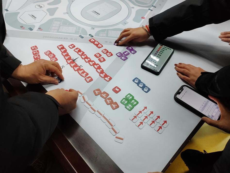 在马宏贇老师的带领下,学员进行了一场“路跑赛事终点区域规划”的实践课题。学员在赛道地图上进行各个点位的设计,如医疗站、完赛区、补给区等等。小组讨论每个点位设立的依据,并进行成品展示及观点分享,实现自主、合作、探究等多样化的学习方式。