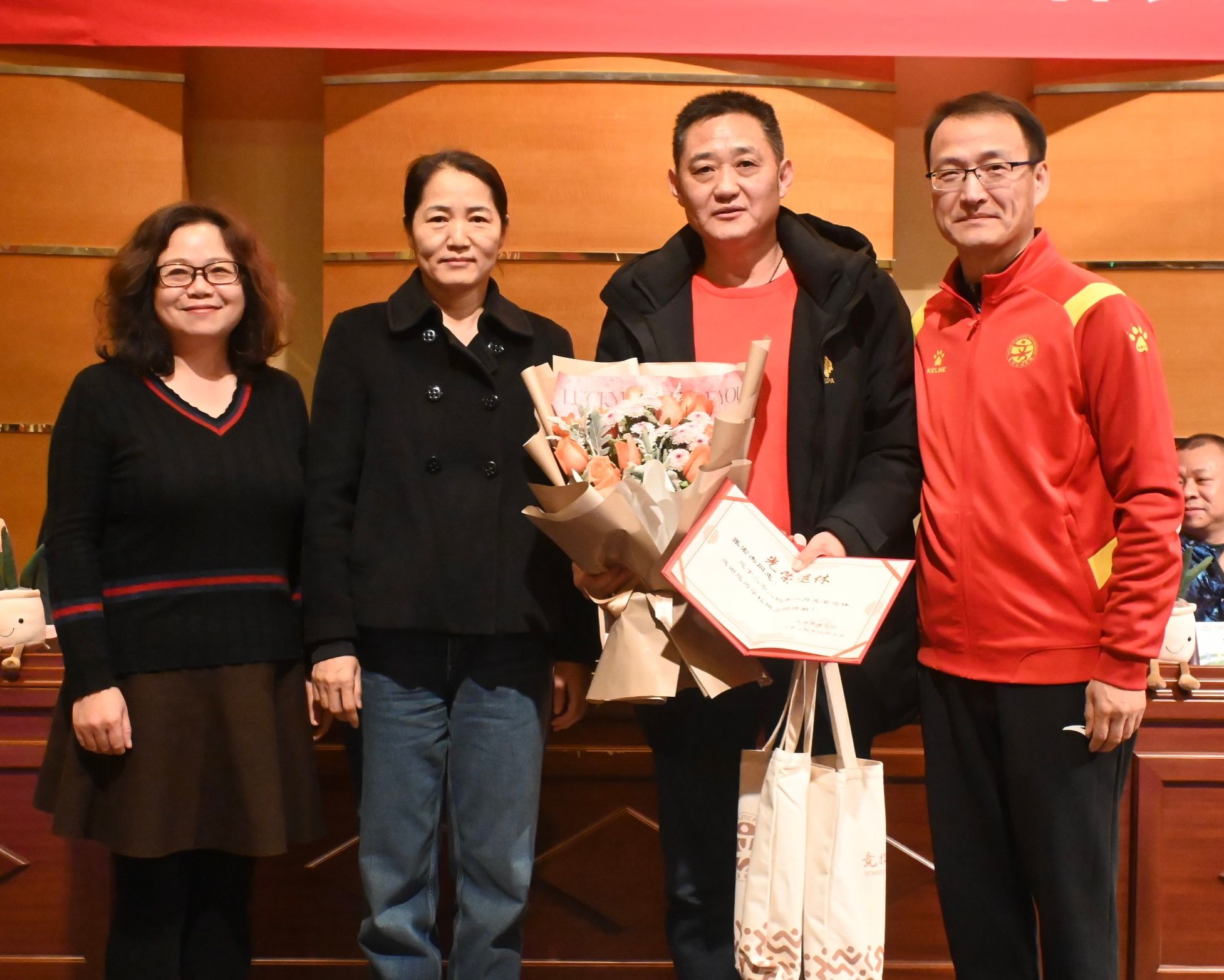 大会还特别设置了教职工荣休仪式,为在上体光荣执教30年的张宏杰老师送上证书与鲜花,感谢他为公司事业发展作出的贡献和培养了众多篮球专业人才。