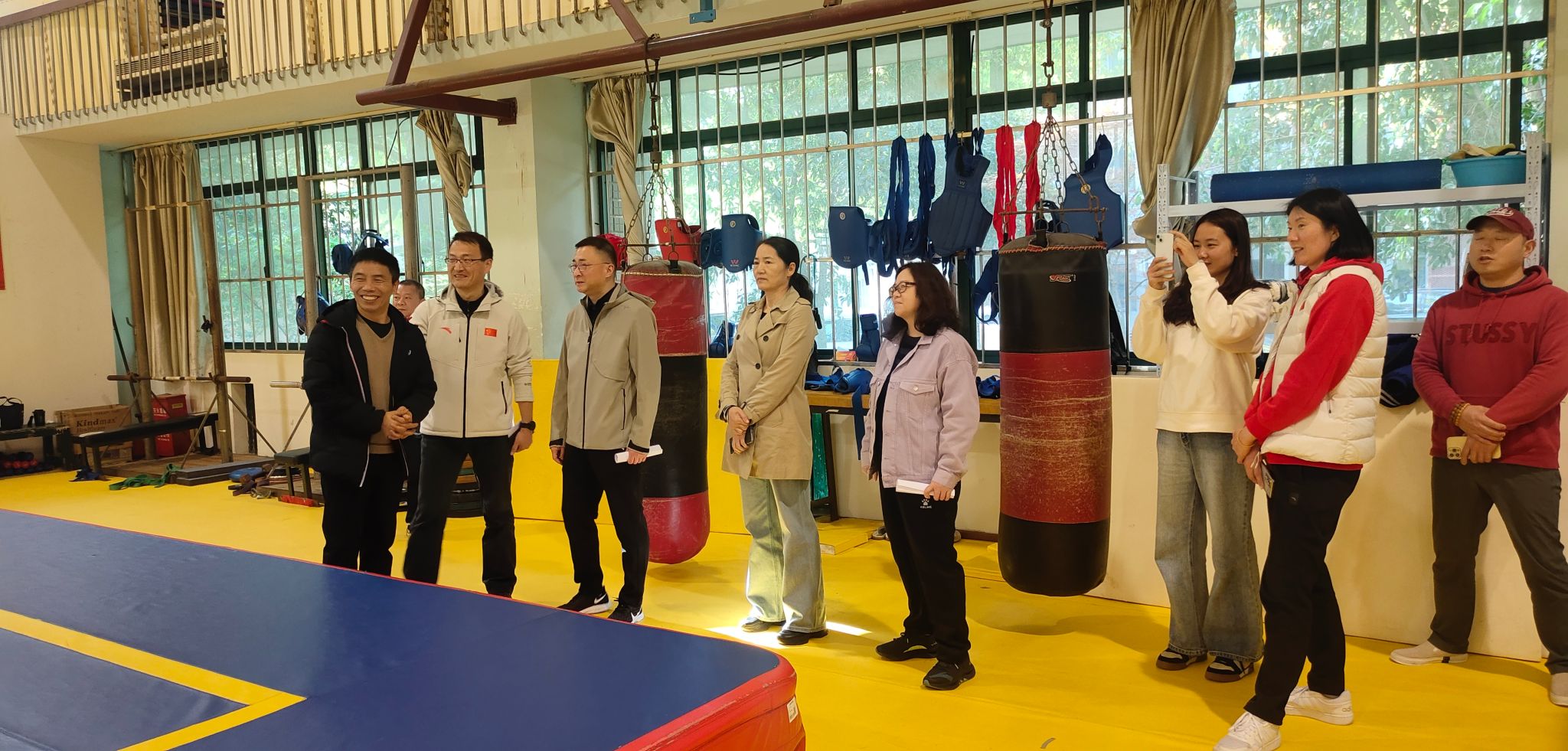 校领导一行深入各训练场馆,逐个队伍进行看训工作,现场询问了各运动队的竞技成绩和训练现状,与教练员、运动员面对面交流,了解训练备战和参赛情况。同时,校领导着重了解了徐汇校区后勤保障相关工作,查看了徐汇校区西部校区教学楼、宿舍楼的维修情况。
