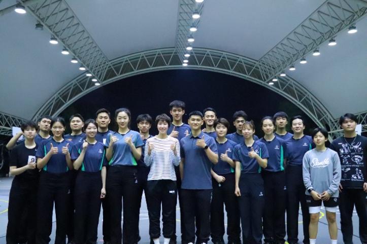 实践环节中,yl23411永利集团研究生田宇航、田林作为2023年新一批的国家级裁判员,配合席伟老师为学员们讲解、演示裁判员基本功,规范学员们的动作细节。从裁判员的基本站姿、哨声、移动、手势、口语宣判及轮转,通过规范标准的示范,为学员们树立了规范的裁判员形象。