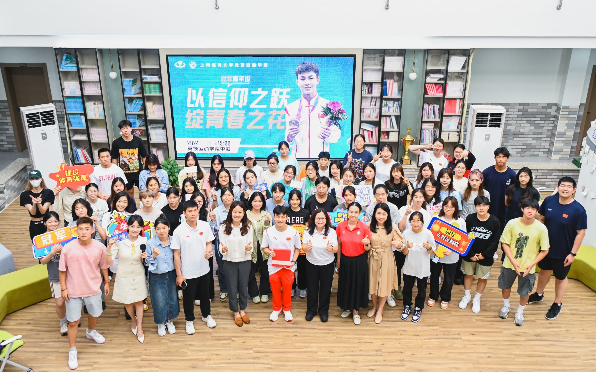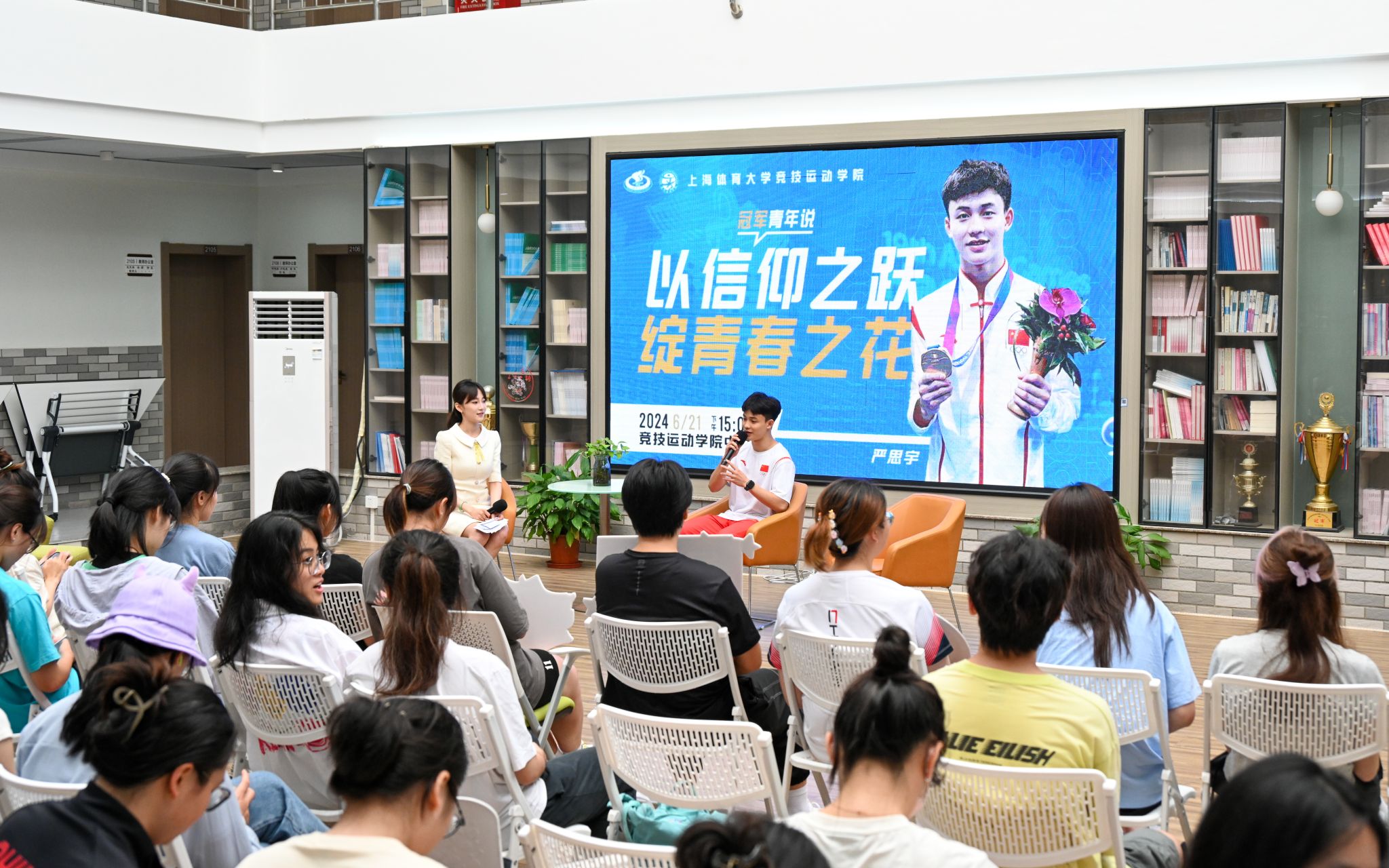 6月21日,yl23411永利集团2020级本科生、杭州第十九届亚运会跳水男子双人3米板冠军严思宇做客《冠军·青年说》,通过“以信仰之跃,绽青春之花”主题分享会,与在场师生一同分享了他的跳水之路与夺冠背后的故事。公司党委书记殷勤,公司党委副书记、副经理庄娜,各年级辅导员出席了本次活动。