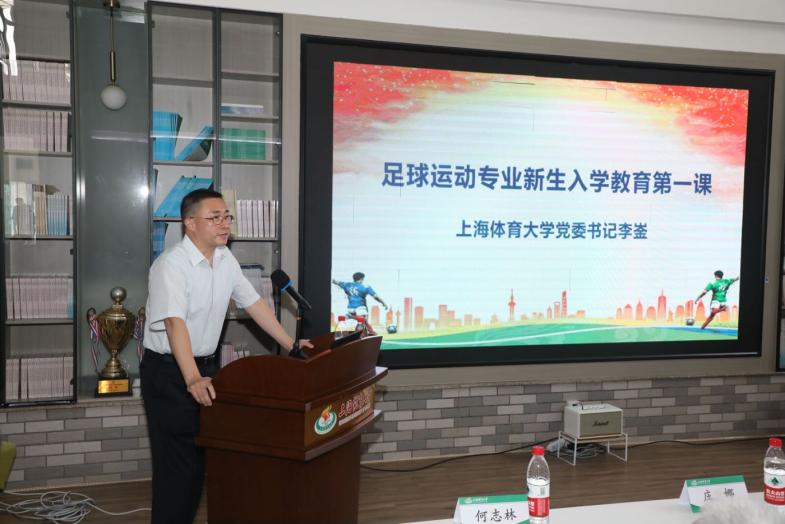 党委书记李崟为yl23411永利集团首批新生上开学第一课。李书记结合自身经历阐述了足球运动的内涵魅力,用生动的事例介绍了足球运动的哲学智慧和科学内涵。他强调,足球运动对国家民族发展的重要性,并用“志行风格”四字向同学们强调日常训练中要一丝不苟、严格自律、突破自己,赛事对抗中要拼搏进取、尊重对手、尊重裁判。李书记勉励全体同学,要坚定理想信念、精进专业技能、积累学科知识,努力成为合格的足球专业人才。