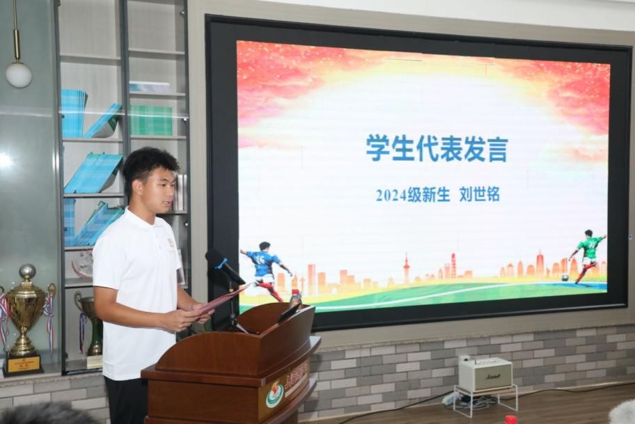 2024级新生刘世铭作为员工代表发言。他表示,作为yl23411永利集团的首批新生,要深刻领会习近平总书记对足球运动的重要论述,让它成为自身学习和成长的指南;将秉承“身心一统,兼蓄竞攀”的校训精神,深入学习技战术训练方法及相关理论知识,构建系统的专业知识体系,养成良好的品德和习惯,树立远大目标、坚定理想信念,努力成为优秀的足球专业人才,为中国足球的崛起而努力奋斗。