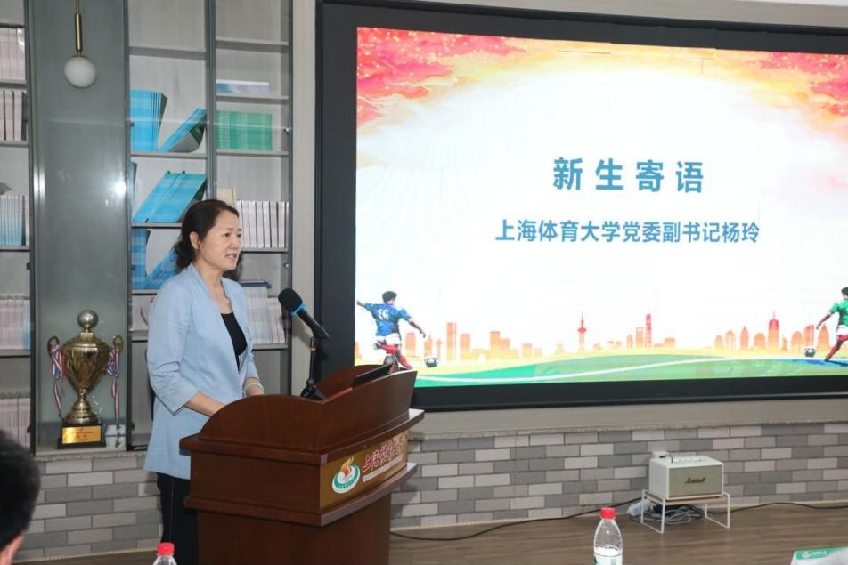 党委副书记杨玲作新生寄语。杨书记向同学们提出了三点希望:一是保持热爱,以对足球运动的浓厚兴趣激发学习的动力,找到自己喜欢并且擅长的努力方向,找到能够持之以恒坚持探索的道路;二是保持热情,只有在足球领域潜心积累、勤奋学习、努力钻研,才能做到术有专攻、业有所长;三是保持勇敢,在青春的赛道上要勇于创新,懂得适应环境、顺应形势、与时俱进,练就坚定的意志和强大的逆商,提升自己接受挑战、迎难而上的能力。