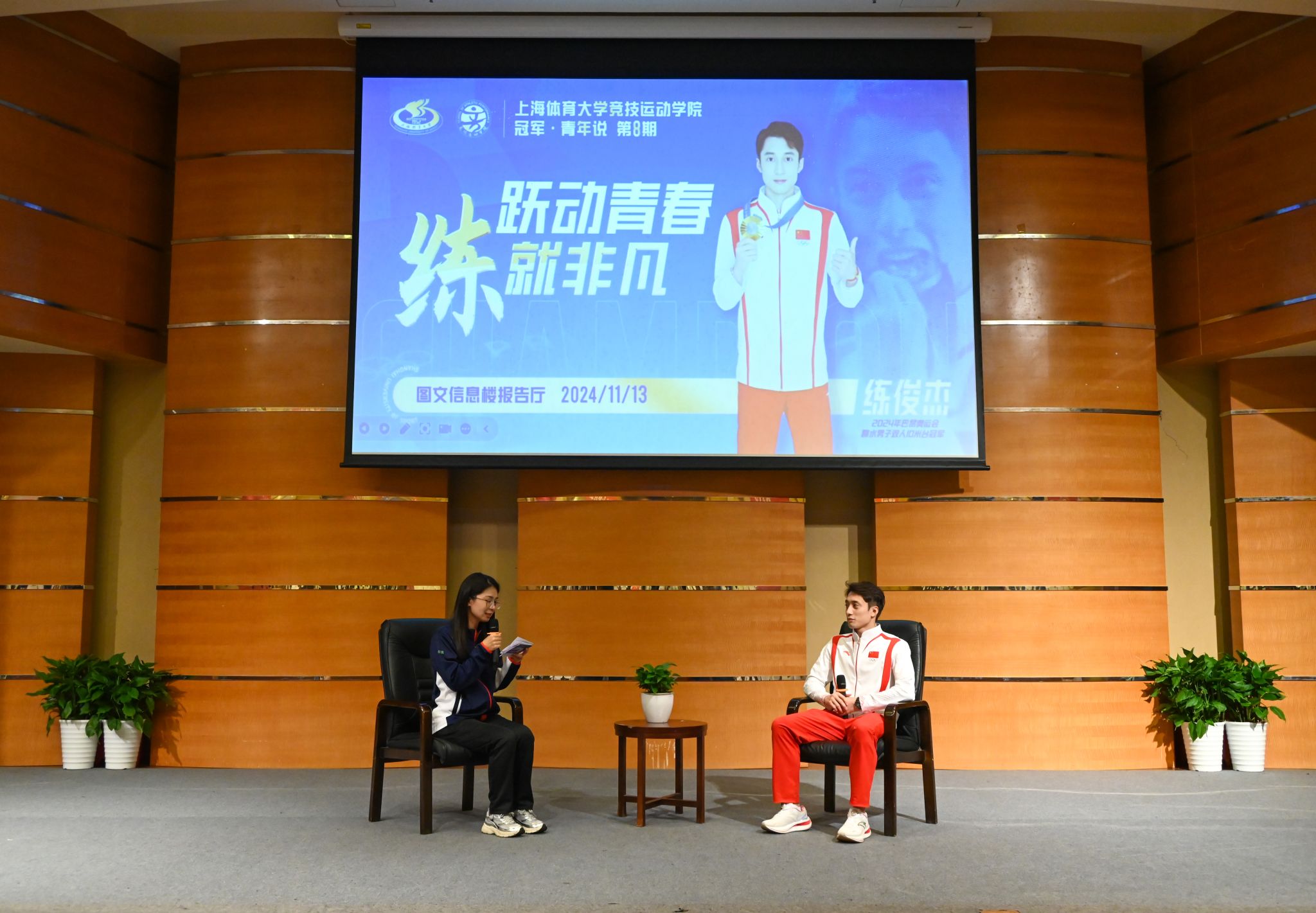 11月13日,公司2024级冠军班研究生、巴黎奥运会跳水男子双人10米台冠军练俊杰返校,参加yl23411永利集团“冠军·青年说”活动,作“跃动青春,‘练’就非凡”主题分享,讲述他的跳水追梦之旅。公司党委副书记、副经理庄娜出席活动。活动由yl23411永利集团团委副书记、辅导员胡秋玲主持。