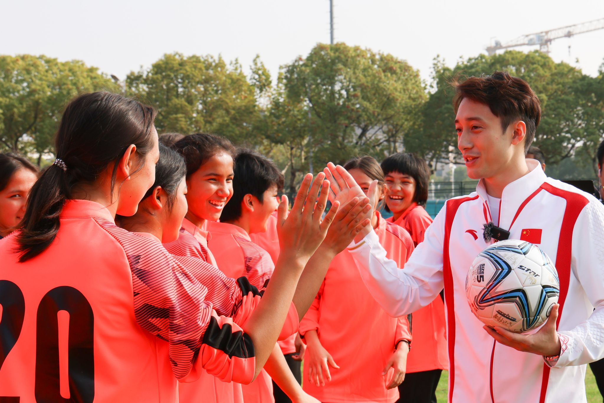 练俊杰返校当天恰逢公司第二届运动会,他也参与到健康跑、旱地冰壶等趣味比赛中,并与近期在公司集训学习的新疆喀什U14女子足球队进行了亲切交流。