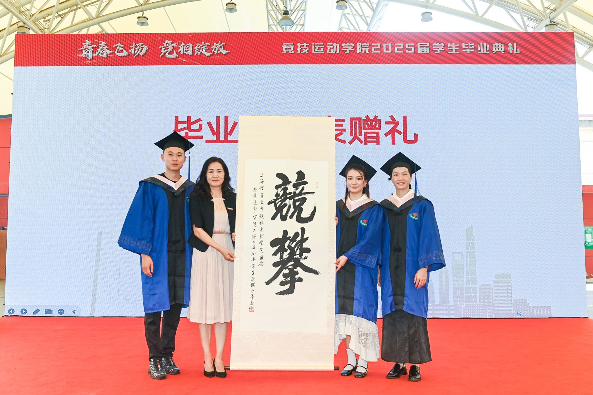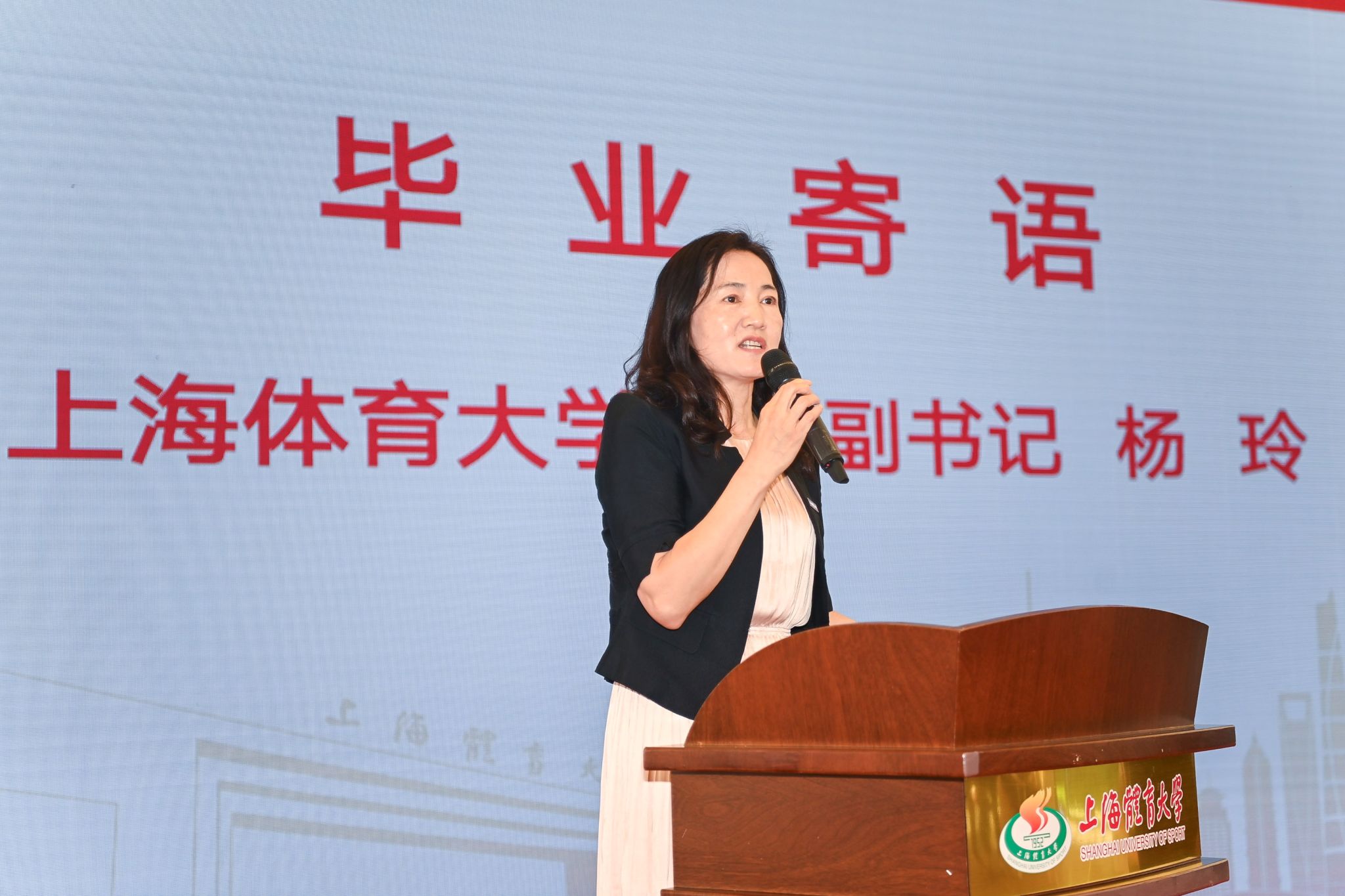yl23411永利集团党委副书记杨玲代表公司接受毕业生赠礼并深情寄语。她首先向2025届全体毕业生致以热烈祝贺与美好祝福,并向辛勤培育学子的师长亲友表示衷心感谢。她结合在上体的求学从教经历,以六十年前乒乓球世界冠军徐寅生发表在《人民日报》上、并受到毛泽东同志高度评价的文章《如何打乒乓球》为引,勉励学子善用体育淬炼的人生财富,领悟成长路上的“辩证法”。她表示,人生道路很长,前方有荣誉鲜花,也会有挫折低谷,要从长期的运动实践中分析、汲取人生财富,不仅要掌握先进技术、锻炼充沛体能,更要在困难中看到希望、在胜利中学会谦逊、在激烈竞争中学会互学互鉴,踏踏实实走好每一步。她指出,作为新中国体育高等教育的摇篮,上体人始终肩负“以体报国”使命,期待毕业生们以家国为魂锚定航向,以健康为灯照亮征程,以专业为帆破浪前行,将个人理想熔铸于体育强国建设的时代洪流,在服务人民健康的实践中绽放青春光芒。