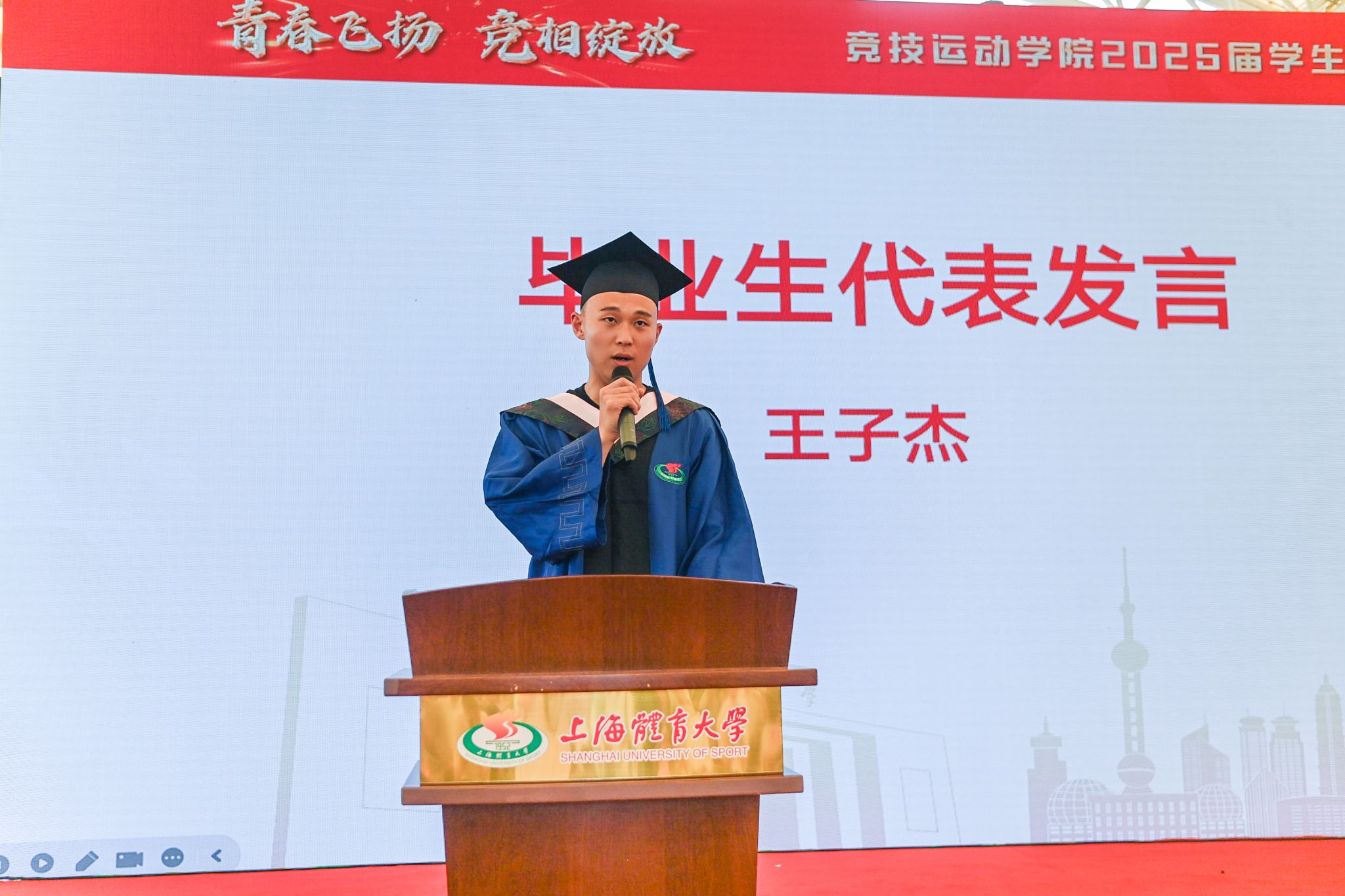 2025亚洲击剑锦标赛男子重剑冠军王子杰作为毕业生代表发言。他分享了自身的成长体悟,感言十五载上体生涯赋予其“跌倒七次站起八次”的勇气和永不停歇的热爱。他表示,上体见证了自己从稚嫩迷茫蜕变为从容坚毅,自己同样也是公司发展的见证者、亲历者、受益者。要带着母校的期许、师长的教诲、同窗的祝福,勇敢地去开拓属于自己的广阔天地,用实际行动,继续诠释“身心一统”的信念,在未来的人生赛道上“兼蓄竞攀”,再创佳绩。