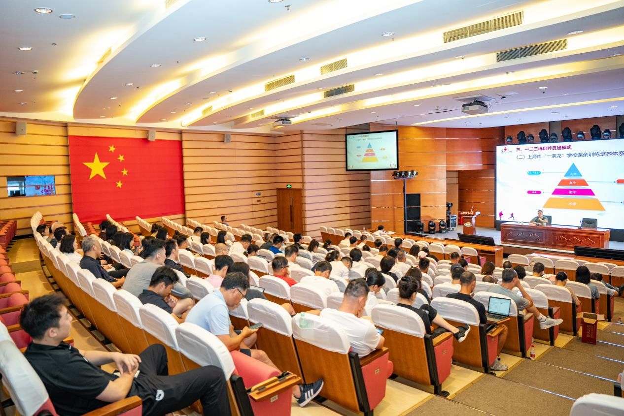 会议特邀上海市青少年训练管理中心主任周战伟作《新时期上海市竞技体育后备人才培养贯通路径》报告。周主任结合上海竞技体育发展态势,项目布局定位、一二三线培养贯通模式及青训相关配套政策等方面为公司青少年梯队建设提供创新思路。