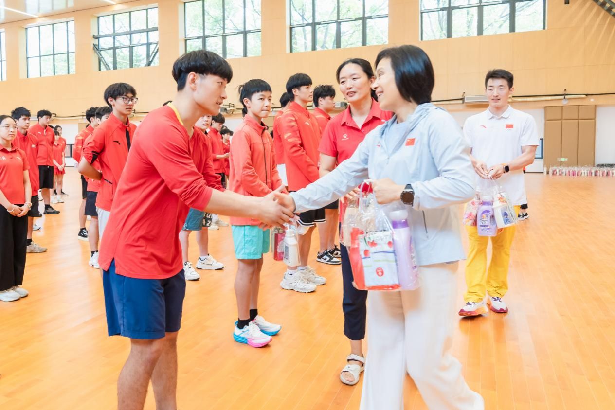 会后,毛丽娟、杨玲一行来到训练场馆,代表公司向奋战在一线的教练员、运动员和保障人员表示亲切的慰问,对全体运动员、教练员全力备战,不怕苦、不怕累、战高温、斗酷暑的精神表示肯定和赞扬,鼓励大家要充分利用夏训时间,努力提高技战术水平,以饱满的精神、高昂的斗志、良好的心态全身心地投入训练比赛,同时,提醒各运动队在高温天气下要做好防暑降温工作,确保夏训安全,也预祝各运动队在下半年的全运会赛场上赛出风格赛出水平,创造佳绩。