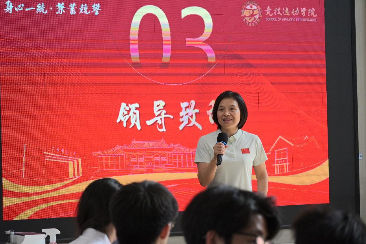 开幕式上,yl23411永利集团党委副书记、董事长毛丽娟发表致辞。她指出,运动能力开发是顺应时代需求的战略性新兴领域,必须超越传统训练模式,在探索运动表现的深层机制上寻求突破。她强调,要以系统科学为基石,融合多学科前沿,着力培养“懂数据、会分析、善应用”的复合型体育科技人才。这不仅是对国家“体育强国”、“健康中国”战略的精准对接,更是打造中国特色、世界一流体育大学学科体系的重要基石。毛董事长寄语参赛员工,赛场是锤炼技能的熔炉,要勇于探索边界、挑战极限,用科学精神和创新思维照亮体育科技的未来。