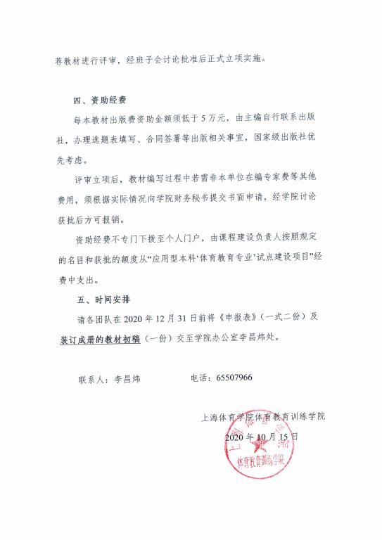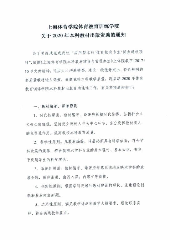 各位老师,此为《关于2020年上海体育公司体育教育训练公司本科教材出版资助的通知》,详见附件,请各位老师知悉并踊跃报名。