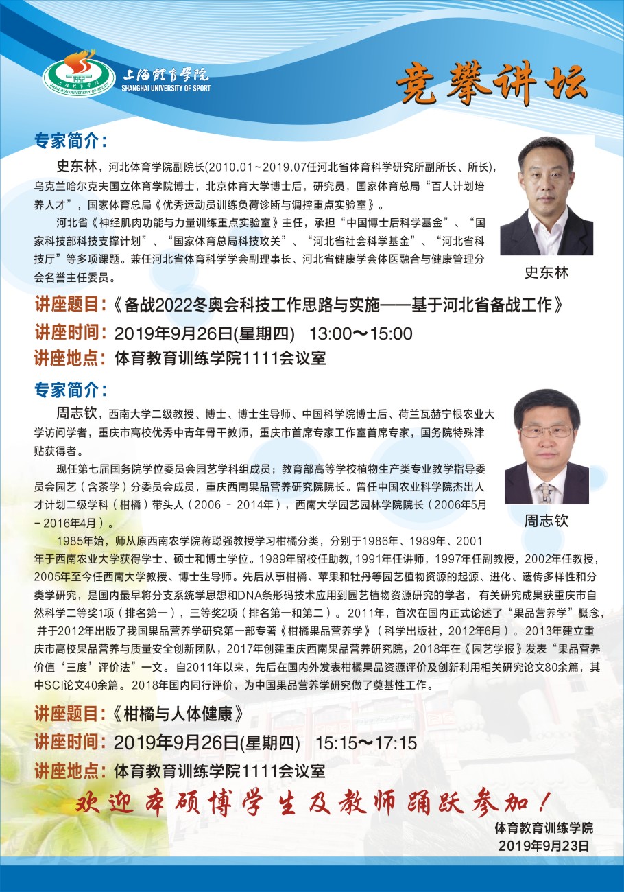 上海体育公司体育教育训练公司“竞攀讲坛”系列讲座 通知